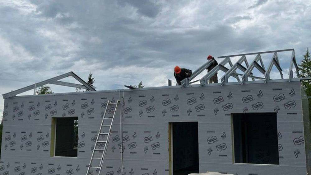 В Аксарке завершается строительство центра ритуальных услуг. Рабочие уже приступили к монтажу кровли на объекте.