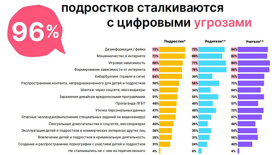 Альянс по защите детей в цифровой среде выяснил, что 96% подростков сталкиваются с цифровыми угрозами