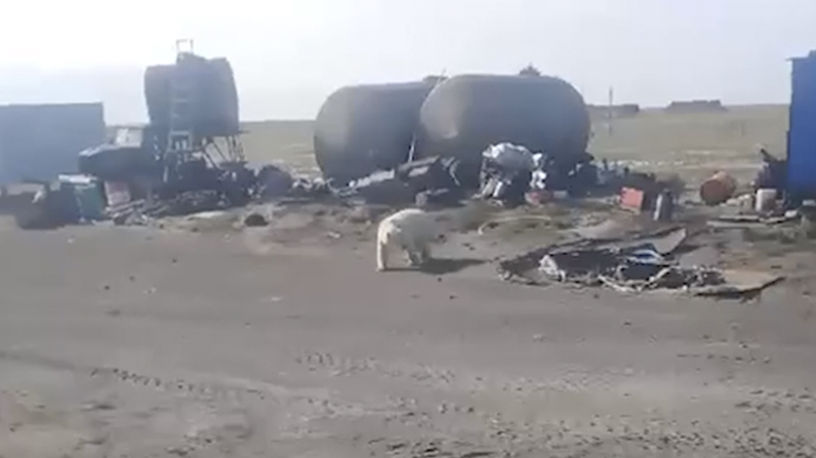 На кадрах можно увидеть, как медведь ходит рядом с цистернами. В комментариях пользователи Сети предположили, что косолапый вышел в поселок из-за голода и ищет пищу.