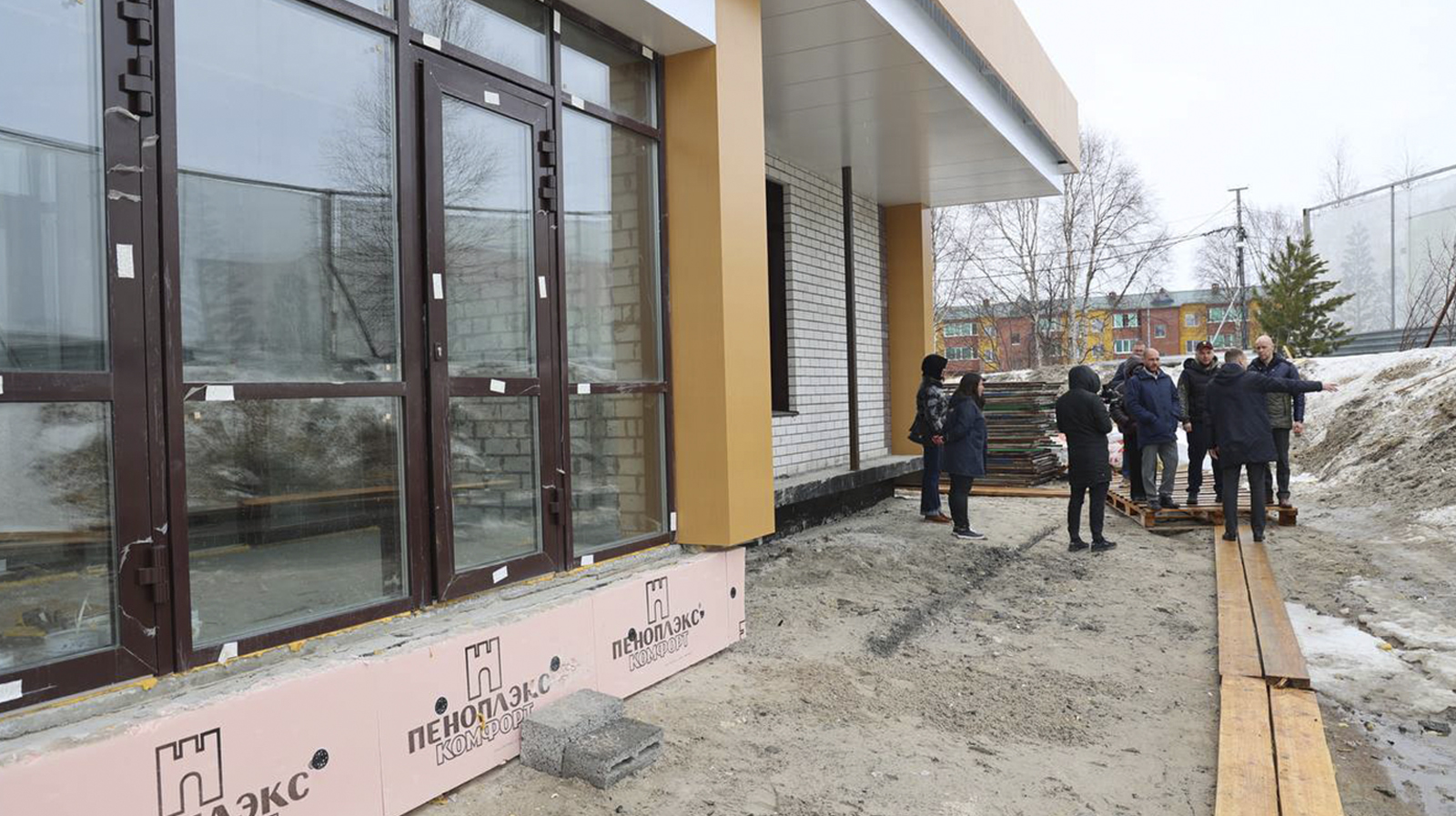 На объекте уже завершают черновую отделку и параллельно ведут благоустройство прилегающей территории.