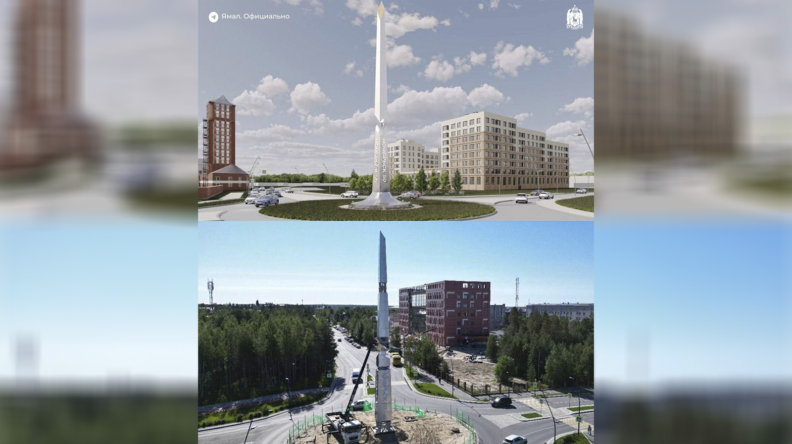 В Ноябрьске на кольце по улице 60 лет СССР установили стелу. Это 30-метровый шпиль, где написано название города.