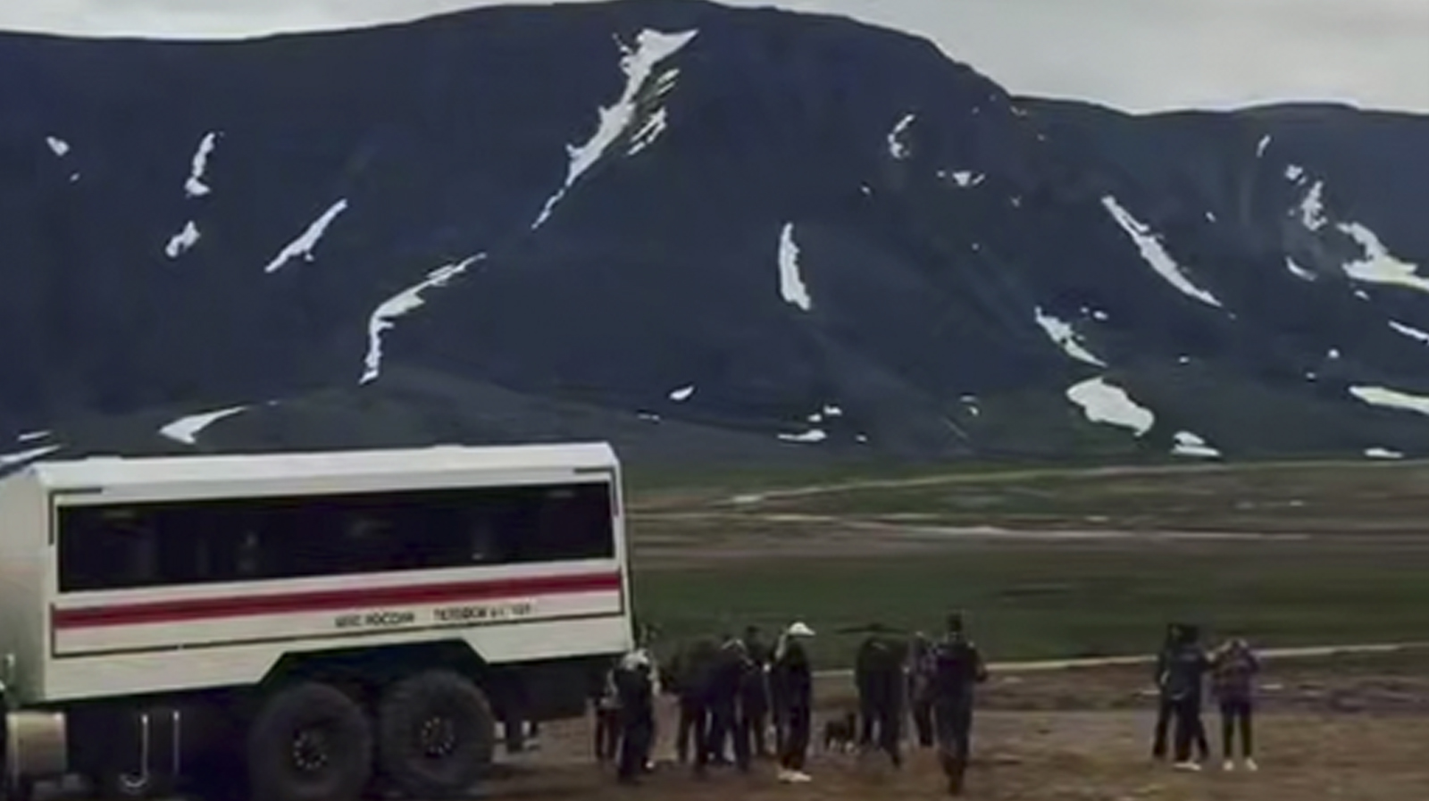 На вершине ледника спасатели развернули три флага.