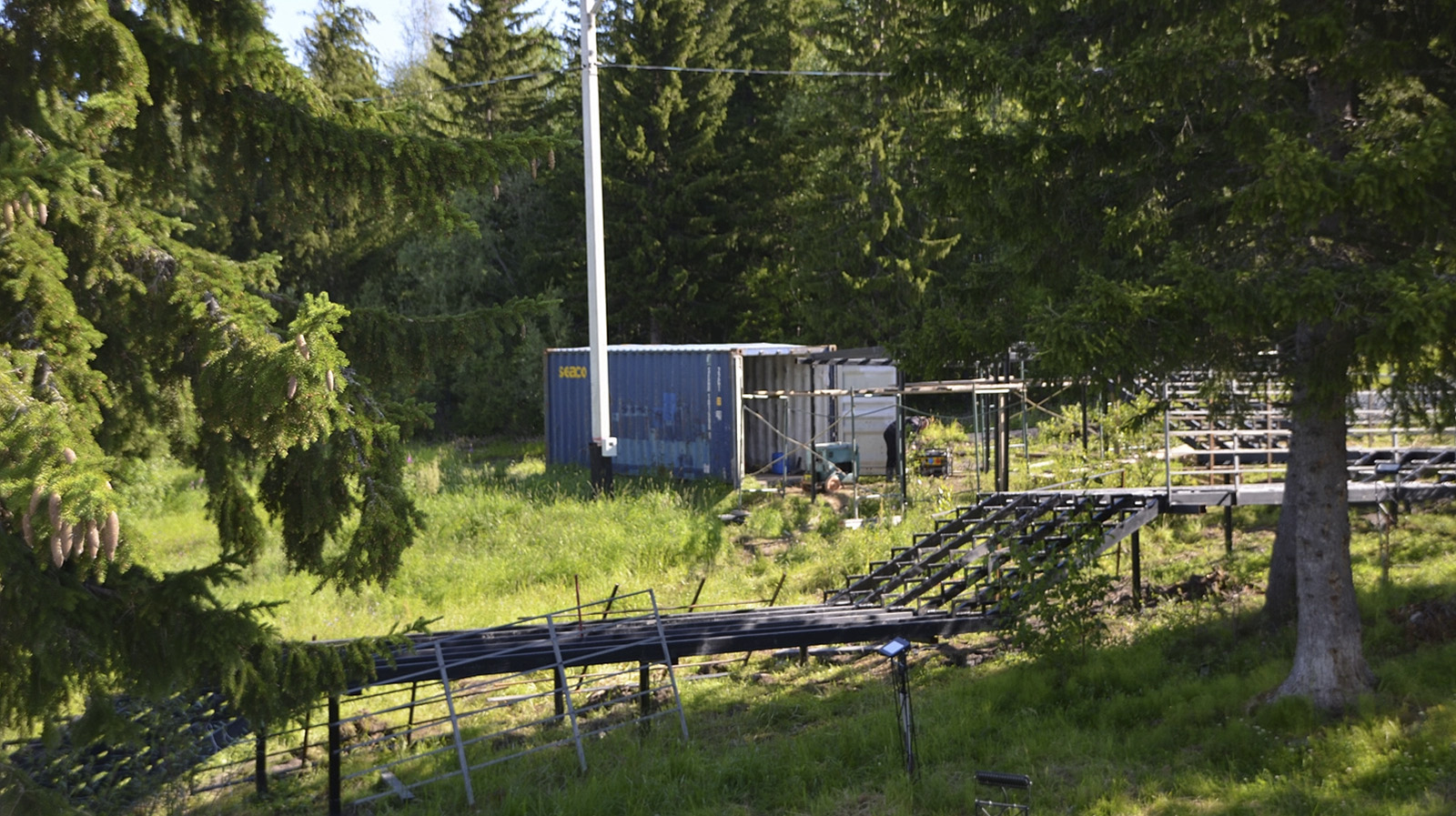 Первый этап, который включает в себя строительство одной из площадок, монтаж освещения, видеонаблюдения, ограждения и зон отдыха, планируют завершить до конца сентября. Сейчас ведутся работы по сварке и резке металла, так как в проекте много металлоконструкций. Один из участков тропы будет проходить над рекой.