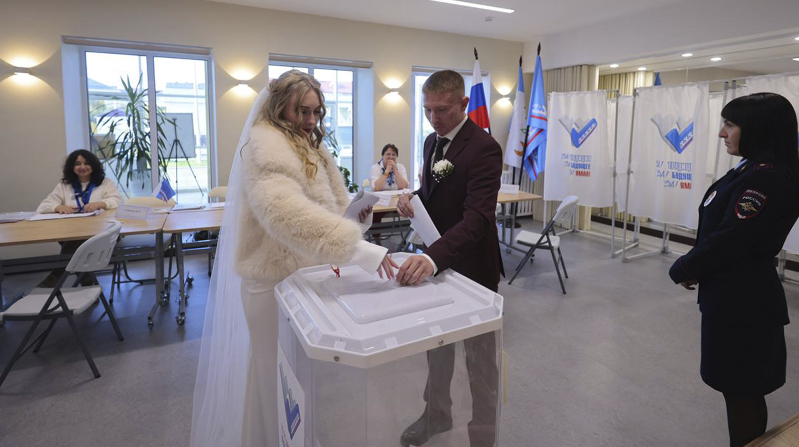 Сразу после торжественной церемонии регистрации брака супруги сделали первый шаг в качестве семьи. Они решили принять участие в выборах.
