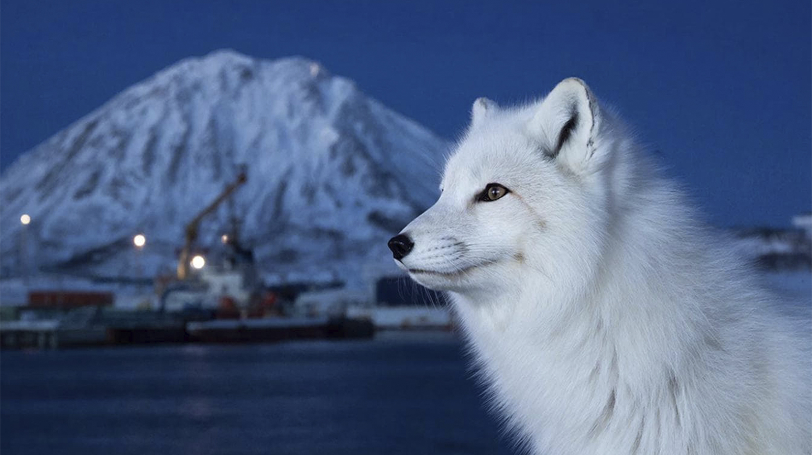 В порту Сабетта заметили необычного гостя — полярную лису. Снимок опубликовали в Telegram-канале «Атомфлота».