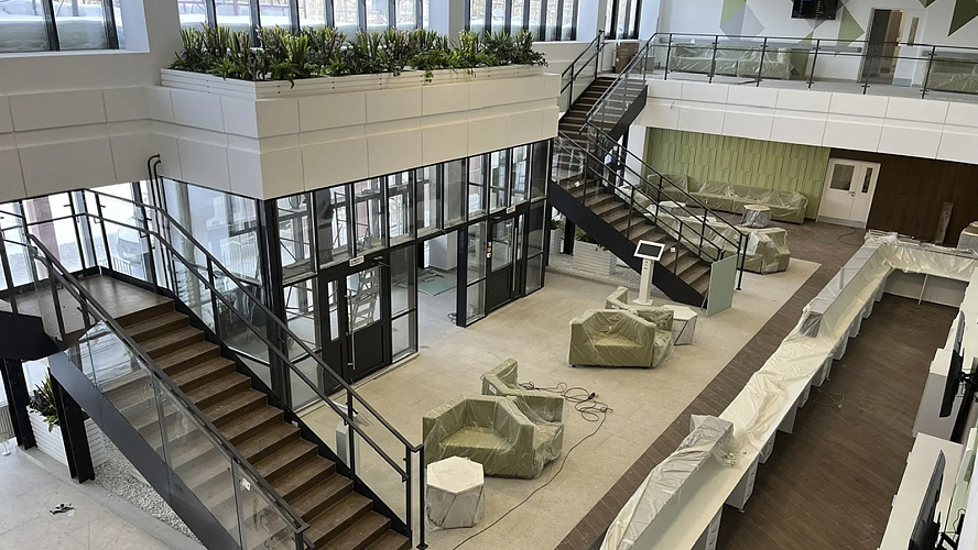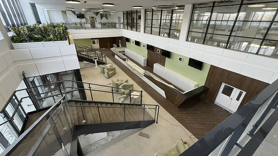 В Ноябрьске продолжается строительство новой поликлиники, которая станет самой большой на Ямале. Сегодня здесь активно ведутся работы: монтируют медоборудование, ведут отделку и укомплектовывают пространства мебелью.