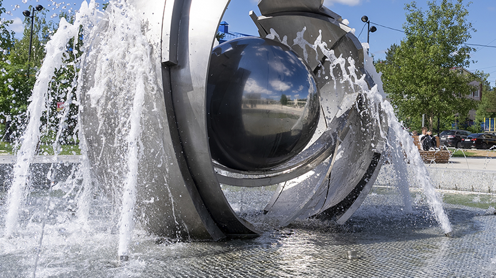 На улице Вайнера в Екатеринбурге фонтан «Спираль времени» стал ярким арт-объектом в честь премьеры музыкальной комедии «Королёк моей любви» на ТНТ.